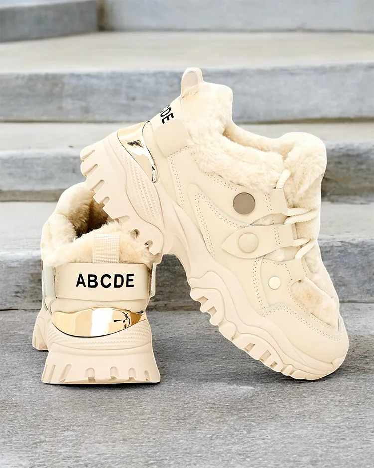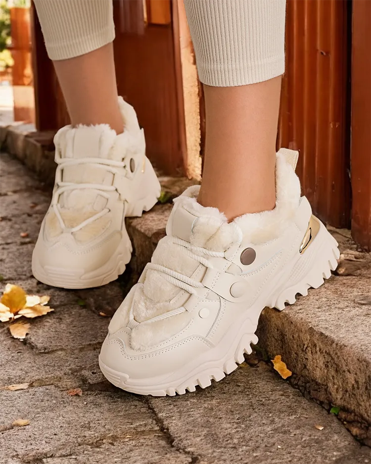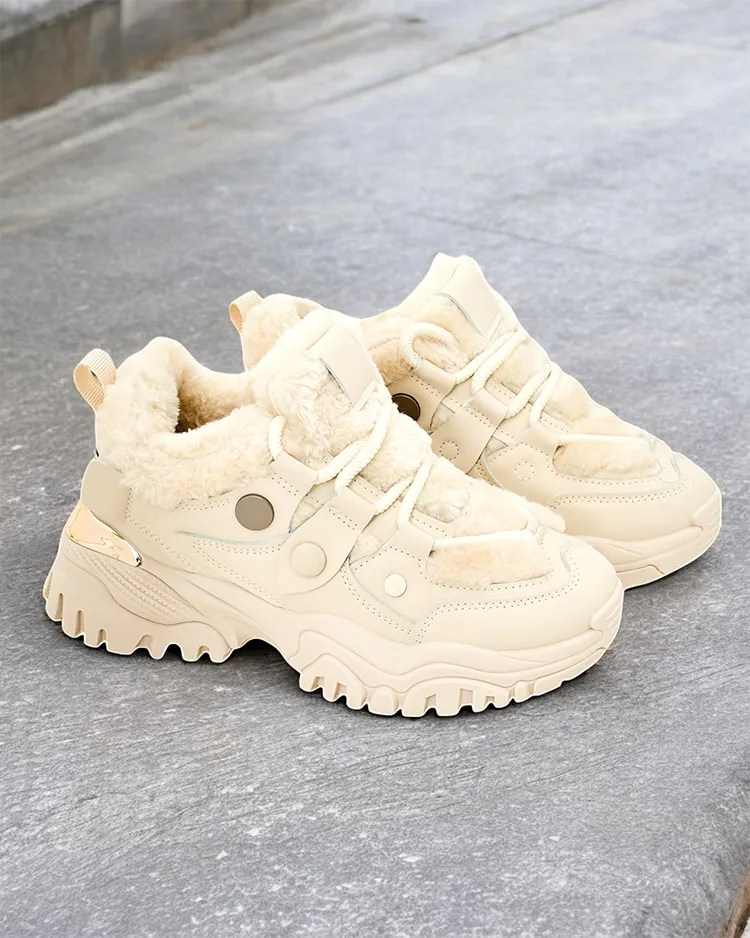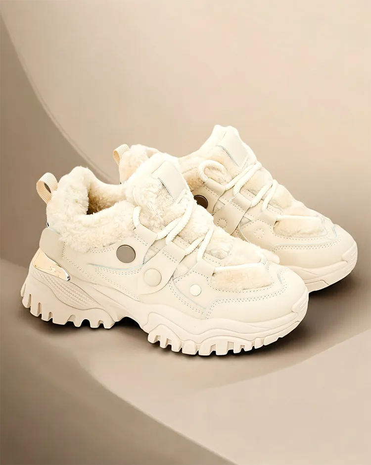 - Женские спортивные кроссовки с меховой подкладкой и более толстой подошвой. Верх с шнуровкой, изготовленный из комбинации эко-кожи и ткани. Внутри мягкий мех. Отличное дополнение к вашим зимним повседневным нарядам!