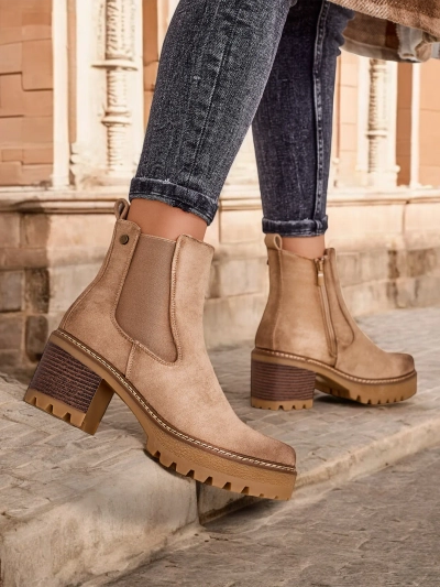 - Стильные женские ботильоны - идеальное решение для холодных дней. Верх из эко замши застегивается на молнию, а внутри есть меховая подкладка. Модель на каблуке и с круглым носком. Отличное дополнение к вашим повседневным нарядам!