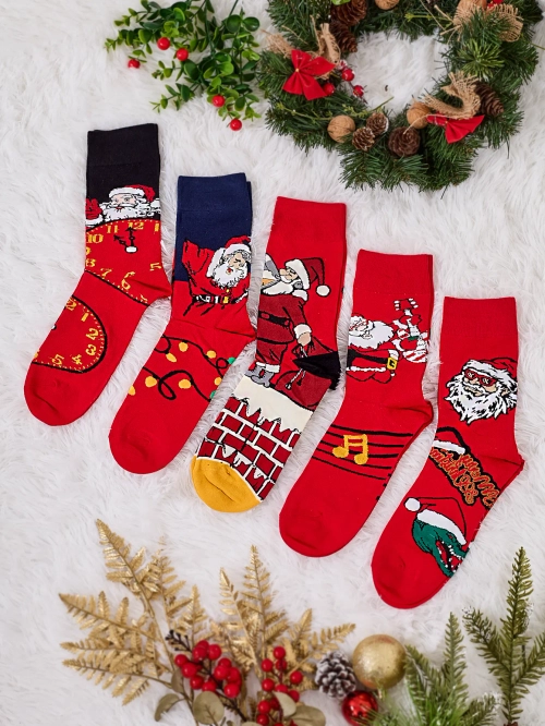 - Оригинальные мужские носки из эластичного хлопчатобумажного материала с праздничным узором. Теплые и комфортные - это отличная идея для подарка!