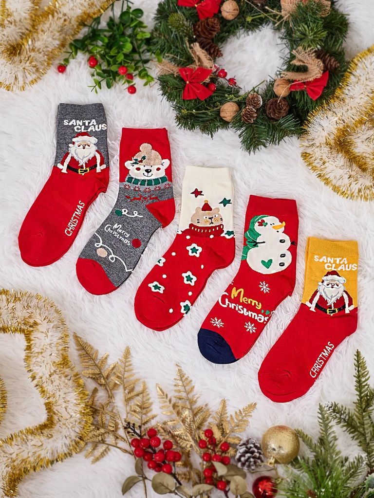 - Прелестные женские длинные носки из эластичного хлопкового материала с праздничным узором. Теплые и удобные - это идеальный подарок!