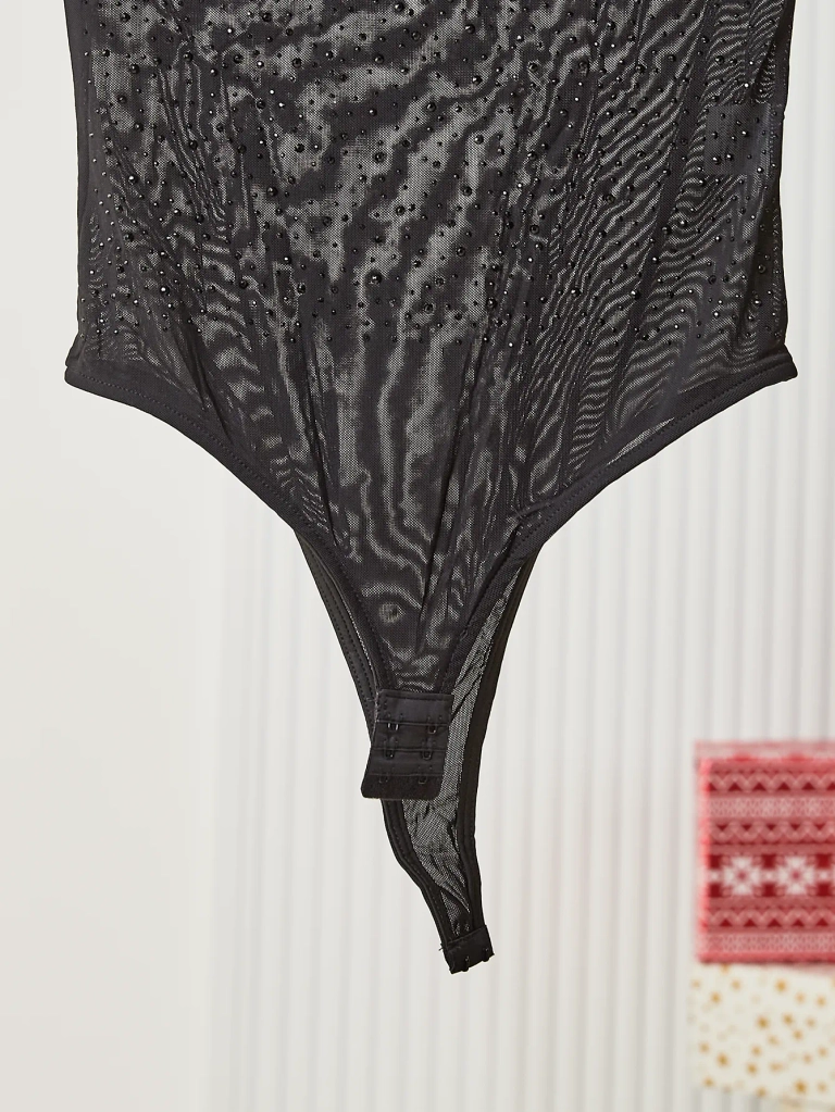 - Боди из сетчатой ткани с цирконами, которые придают им элегантность. Длинные рукава добавляют нежности. Застежка на крючки обеспечивает идеальную посадку. Идеально подходит для вечера, полного изысканного блеска. ВНИМАНИЕ: Точность измерения (+/-) 1 см.
