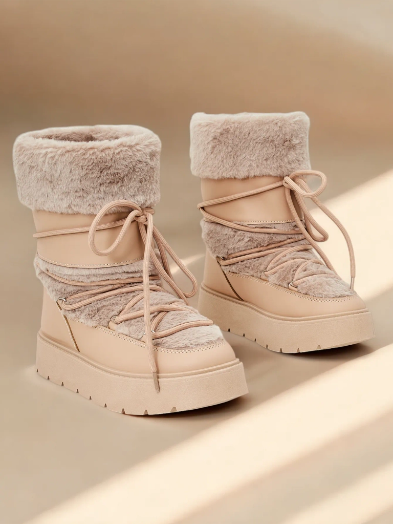 - Женская обувь для холодной погоды с верхом из экокожи и приятной ткани. Внутри есть приятная меховая подкладка, обувь имеет шнуровку. Прекрасно подходит для зимы!