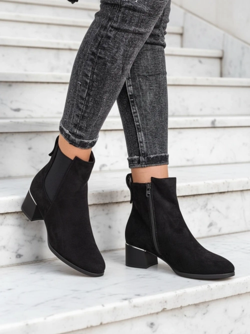 - Замечательные женские ботильоны с низким каблуком, изготовленные из эко-кожи. Внутренняя отделка из нежного меха. Модель с застежкой на молнии. Идеально подходит для осенних нарядов!