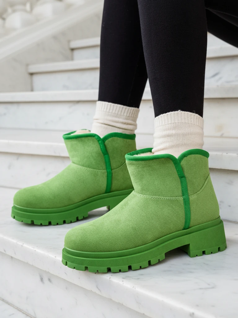 - Отличные женские зимние снежные сапоги на плоской подошве. Верх выполнен из искусственной замши, а внутренняя часть утеплена мехом для тепла. Идеальная основа для зимы!