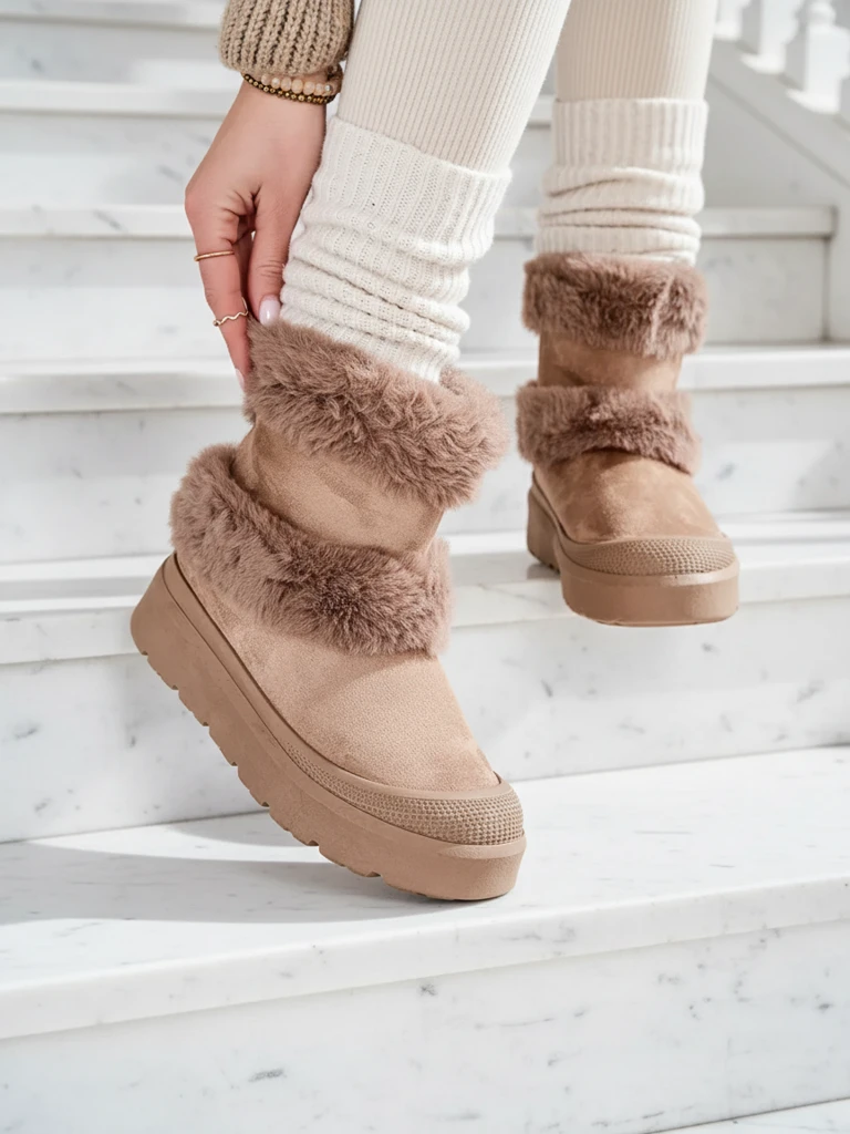 • Женские снежные сапоги с голенищем, изготовленным из комбинации замши и удобной ткани. Внутри приятная меховая подкладка. Идеальны для зимы!