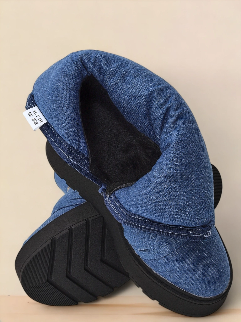 • Женские снегоступы, сделанные из комбинации ткани и эко-замши. Сапоги на танкетке. Нежная изоляция внутри. Модель украшена изысканными элементами на верхней части. Идеально подходит для прохладных дней.
