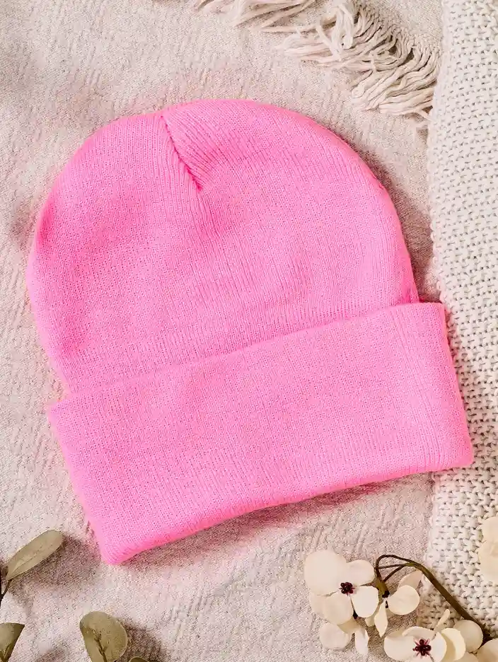 Розовая женская двухслойная шапка-бини - Аксессуары