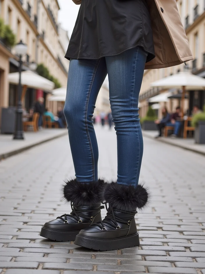 - Женские зимние сапоги с голенищем из комбинации ткани, похожей на брезент, и эко-кожи. Внутри приятный мех, обувь на резинке и шнуровке. Отлично подходит для зимы!