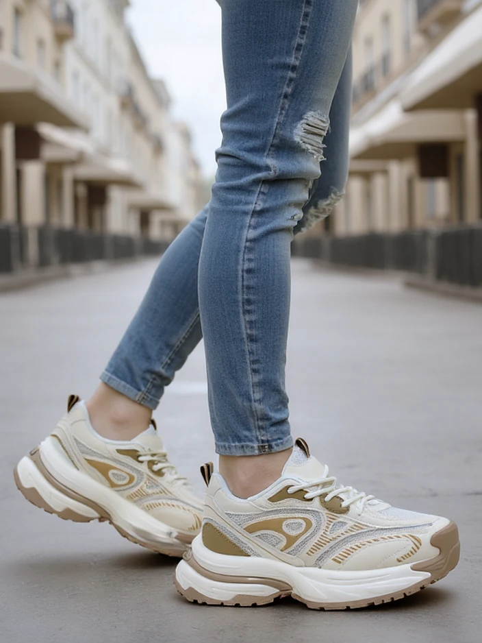 - Женские спортивные туфли в виде платформенных кроссовок. Изготовлены из эко-кожи и ткани. Отличное дополнение к вашему повседневному наряду!
