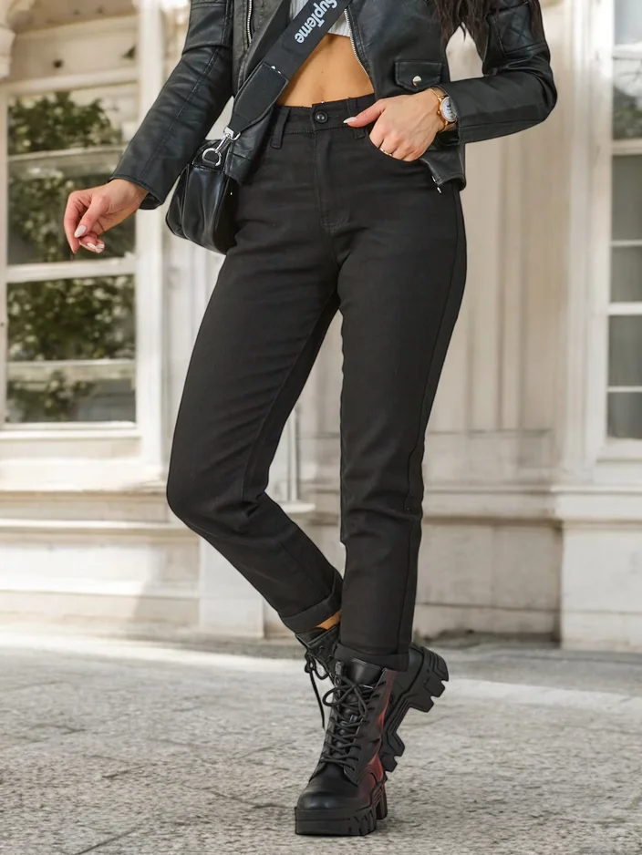- Стильные женские джинсы mom из хлопкового материала. Модель с высокой талией, застежкой на пуговицу и молнию, а также 4 карманами. Необходимый элемент в каждом гардеробе!