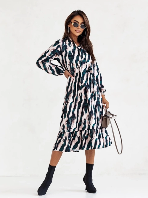 • Женское миди-платье с принтом, длинными рукавами и закрытым воротником. Модель украшена резинкой на талии и свободным кроем. Идеально для повседневной носки! ЗАМЕТКА: Точность измерений (+/-) 1 см.