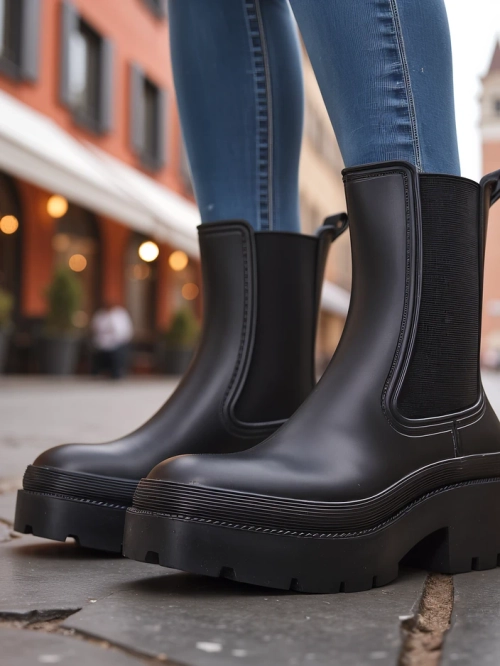 - Классические женские ботильоны на плоском каблуке, сделанные из резины. Внутри есть тканевая стелька. Эластичные вставки по бокам. Идеально подходят для осенних дождливых дней!