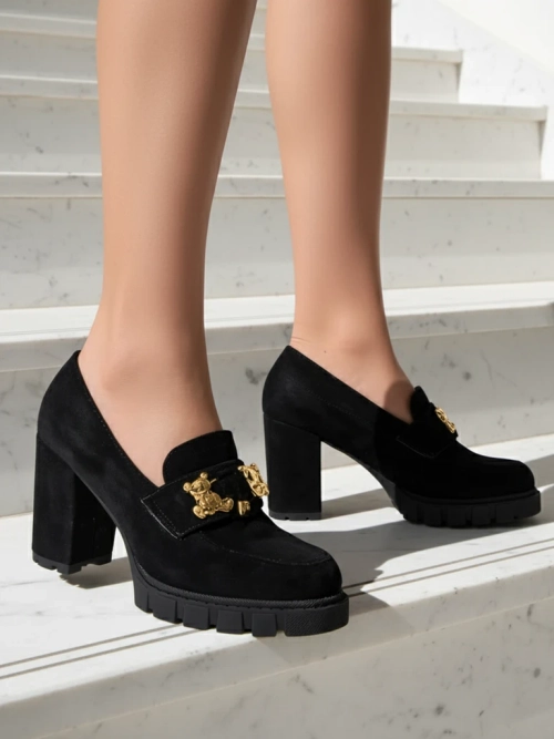 Потрясающие черные туфли на устойчивом каблуке из замши, элегантные и модные