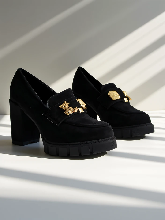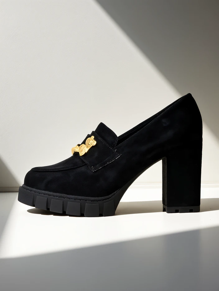 Откройте для себя элегантные черные женские туфли из экологичной замшевой кожи, которые станут идеальным дополнением к вашему весеннему и летнему гардеробу. Благодаря высоте каблука 9 см эти туфли обеспечивают идеальный баланс между комфортом и стилем. Туфли тщательно изготовлены из экологически чистых материалов, таких как экологичная кожа, что делает их выбором, сочетающим моду с экологическими ценностями. Стельки также изготовлены из экологичной кожи, что повышает комфорт при длительном ношении. Многочисленные преимущества этих туфель заключаются не только в их современном внешнем виде, но и в высоком качестве изготовления, которое гарантирует долговечность. Нося их, вы будете чувствовать себя уверенно и стильно, независимо от случая. Кроме того, благодаря плоской конструкции их легко сочетать с разными стилями. Чтобы создать модный комплект, вы можете сочетать эти туфли с: 1. Платьем миди - создайте элегантный образ для летней вечеринки. 2. Джинсами и белой блузкой - идеально для повседневного выхода с друзьями. 3. Юбкой-карандаш - сбалансированный и профессиональный вид для офиса. Чтобы обеспечить долговечность обуви, правильно храните ее в сухом месте и избегайте контакта с водой. Также рекомендуется использовать чистящие средства, предназначенные для замши, чтобы сохранить их первоначальный вид. Вы можете быть уверены, что эти туфли будут модными в каждом сезоне, а их вневременной дизайн никогда не выйдет из моды.