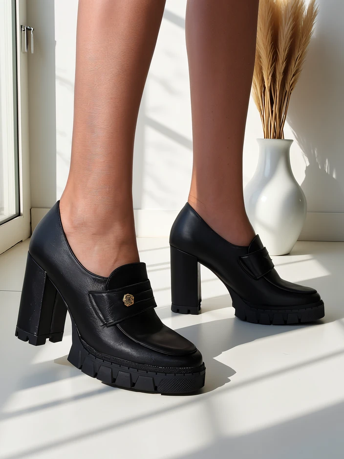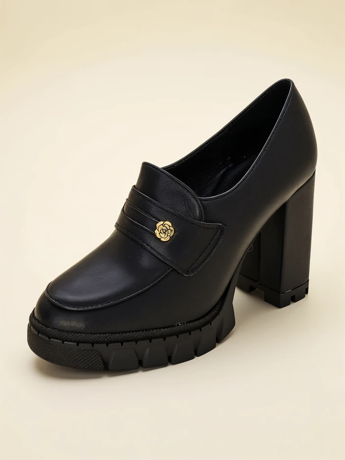 • Классические женские мокасины на каблуке. Модель полностью выполнена из экокожи. Обувь украшена изящным декором на верхней части. Идеальный повседневный элемент!