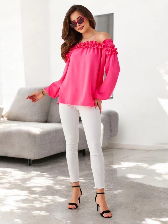 Royalfashion Женская блузка с открытыми плечами и рюшами
