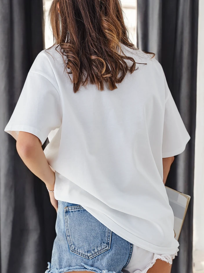 - Хлопковая женская футболка — это легкий и комфортный вариант на каждый день. Вдохновленная стразами, она идеально подходит для повседневных стилей. Мягкая ткань обеспечивает комфорт, а минималистичный дизайн делает её подходящей для различных нарядов.