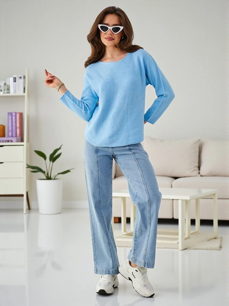 • Damski sweterek wykonany z lekkiej, wiskozowej tkaniny. Posiada długie rękawy i okrągły dekolt, zapewniając komfort i elegancję w codziennych stylizacjach. Dostępny w różnych kolorach, pozwala na łatwe dopasowanie do każdej garderoby!