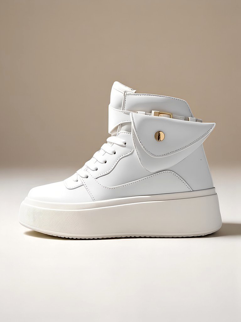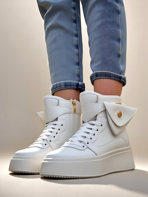 Кроссовки Callisto — это квинтэссенция современного дизайна и комфорта. Выполненные из высококачественной экокожи, они отличаются минималистичным белым фасоном, идеально подходящим к актуальным трендам. Платформа добавляет им характер и обеспечивает комфорт на весь день. Золотые детали, такие как молния и пуговица, тонко подчеркивают их элегантность. Уникальный дизайн Callisto — это сочетание классического кроя кроссовок с современными элементами, такими как кармашек на голенище. Мягкая подкладка обеспечивает комфорт, а прочная подошва гарантирует стабильность и амортизацию. **Варианты сочетаний:** 1. **Повседневный:** Сочетайте Callisto с джинсами и простой футболкой, чтобы создать непринужденный городской образ. Добавьте косуху для рок-н-ролльного акцента. 2. **Элегантный:** Наденьте Callisto к миди-платью или юбке-карандаш и элегантной блузке. Сочетание кроссовок с женственными элементами гардероба добавит образу современности. 3. **Спортивный шик:** Сочетайте Callisto со спортивными брюками и толстовкой с капюшоном, чтобы создать удобный и стильный повседневный образ. Добавьте модную поясную сумку или рюкзак. **Уход:** Чтобы поддерживать Callisto в идеальном состоянии, регулярно очищайте их влажной тряпочкой с добавлением мягкого моющего средства. Избегайте замачивания и сушки на солнце. Храните их в сухом и проветриваемом месте. Callisto — идеальный выбор для женщин, ценящих стиль, комфорт и последние тренды. Они станут отличным дополнением к любому гардеробу.