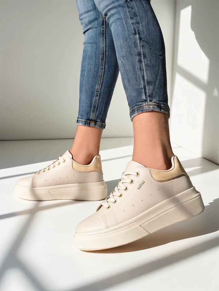 - Sportowe sneakersy damskie na grubszej podeszwie. Cholewka sznurowana, wykonana ze skóry ekologicznej. Wnętrze wykonane z przyjemnej tkaniny. Idealne na co dzień!