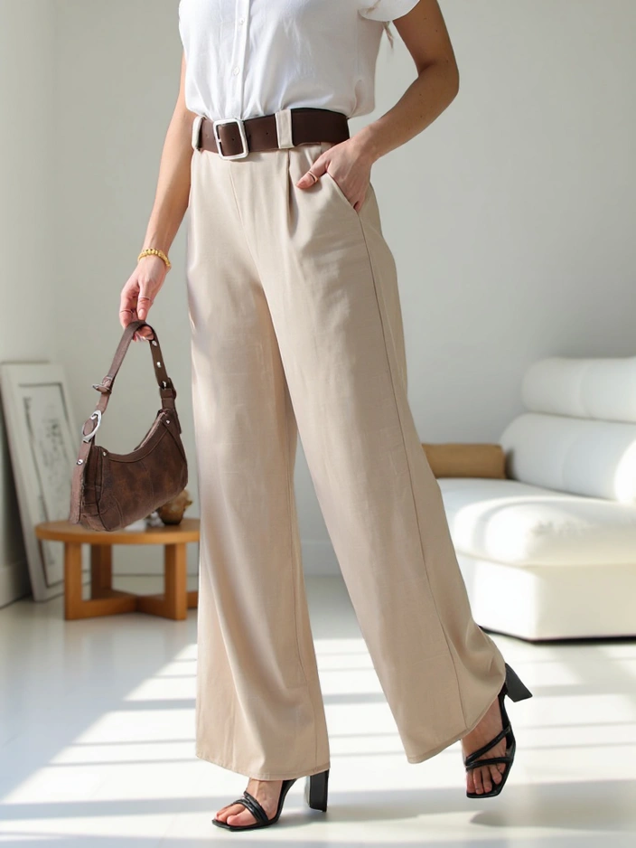 - Удивительные широкие брюки из легкой ткани, модель оснащена 2 карманами и эластичным поясом. В комплект также входит пояс. Обязательная вещь в вашем гардеробе! ПРИМЕЧАНИЕ: Точность измерения (+/-) 1 см.