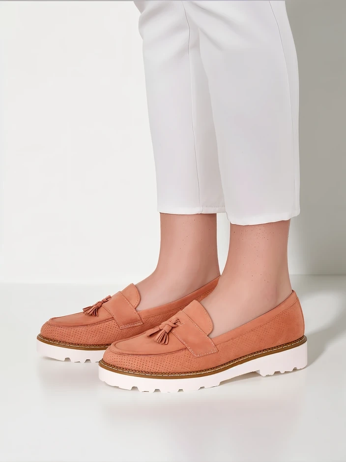 • Прекрасные перфорированные женские мокасины на массивной подошве. Модель в повседневном стиле и изготовлена из экосуede, с экокожаной стелькой. Обувь украшена тонким декором на верхней части. Идеально подходит для весенних нарядов!