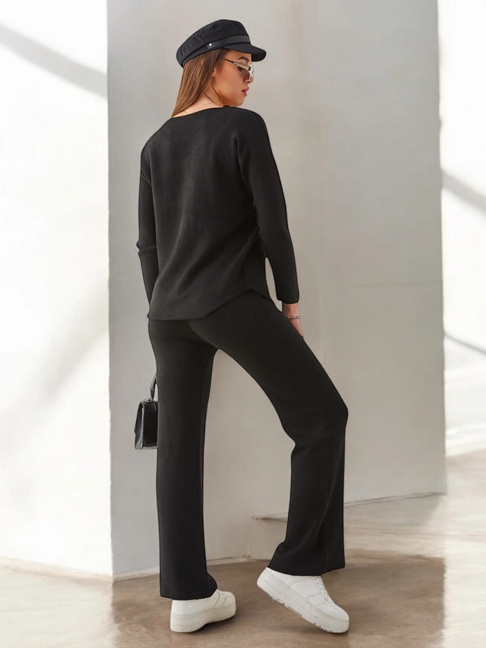 - Женский комплект свитеров, сделанный из приятной ткани. Свитер с V-образным вырезом, имеет длинные рукава. Широкие брюки с эластичным поясом. Обязательная вещь в этом сезоне! ПРИМЕЧАНИЕ: Точность измерений (+/-) 1 см.