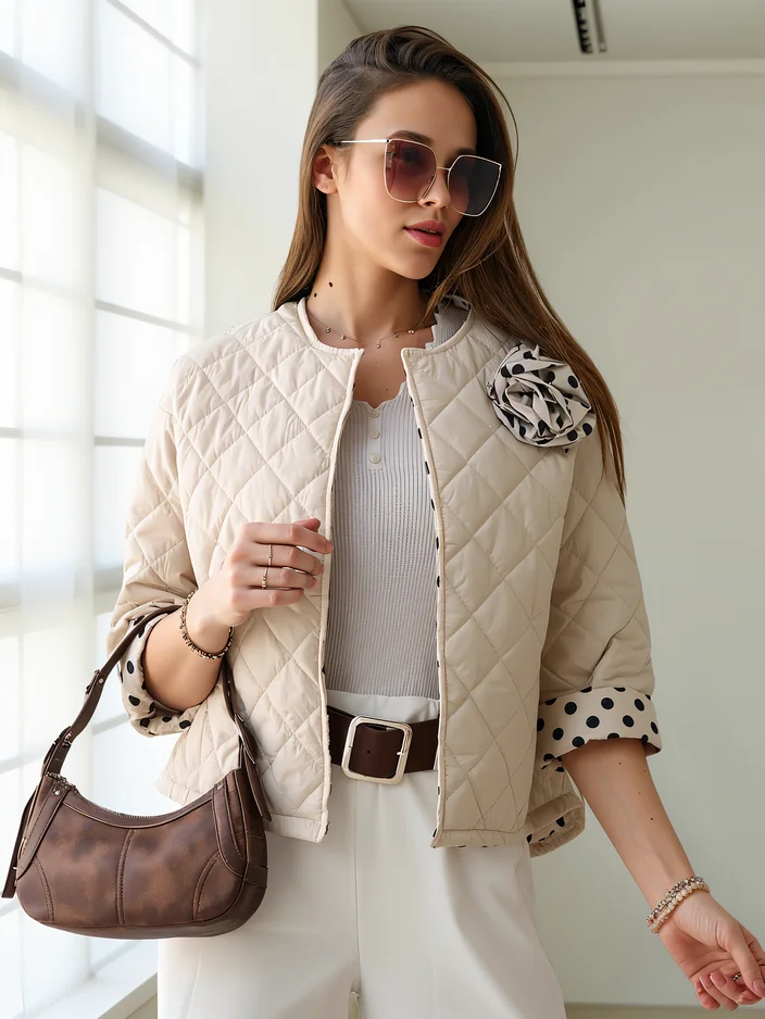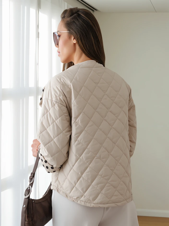 Женская весенне-переходная куртка Royalfashion с цветочным подкладом в горошек