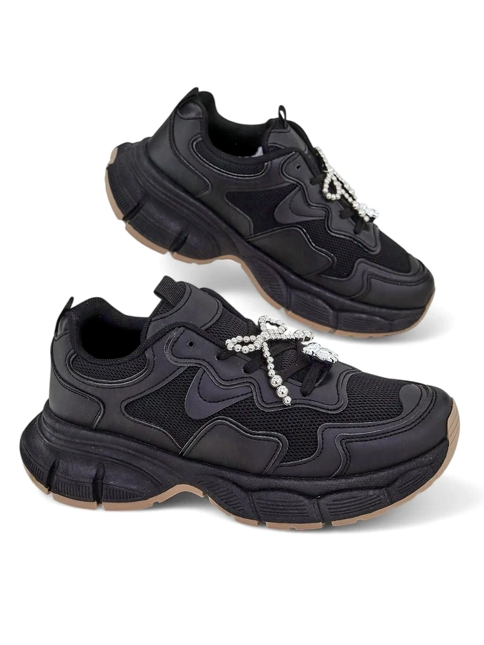 - Женские спортивные туфли из экостойкой кожи и сетки. Модель на толстой подошве. Зашнурованная верхняя часть. Они идеально подойдут к повседневной одежде! Украшены съемной цепочкой.