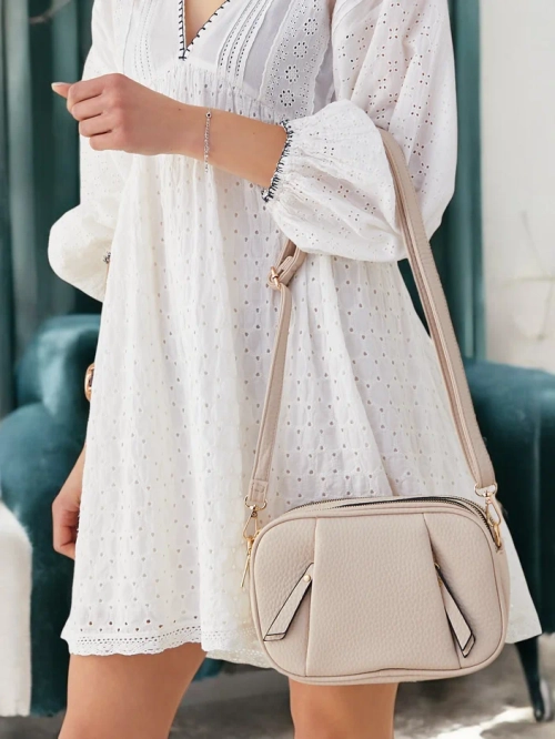 - Небольшая женская сумка на молнии из экологической кожи. Модель имеет 3 отделения и один карман. Кроме того, в комплект входит съемный регулируемый ремень. Идеально подходит для повседневного использования!