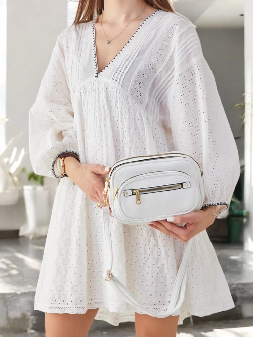 - Женская овальная сумка на молнии, выполненная из экологической кожи. Модель имеет 2 отделения и 2 внешних кармана. Дополнительно комплектуется съемным регулируемым ремнем. Идеально для повседневного использования!