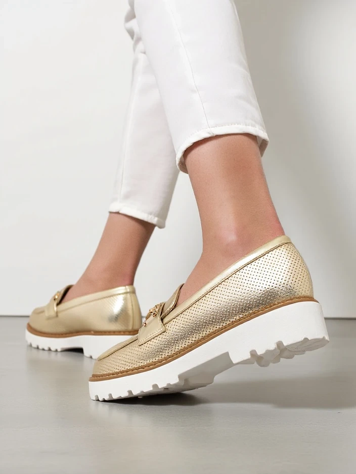 Эти уникальные лоферы сочетают в себе современный дизайн и классическую элегантность. Изготовленные из высококачественной синтетической кожи, они имеют перфорированную отделку, обеспечивающую отличную вентиляцию. Благодаря прочной резиновой подошве, эта обувь не только стильная, но и удобная и прочная для длительных прогулок. Украшенные тонкими деталями в виде металлической пряжки, они добавляют шик и уникальность. Идеально подходят для сочетания с повседневной или элегантной одеждой.