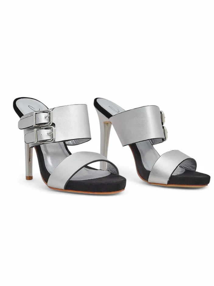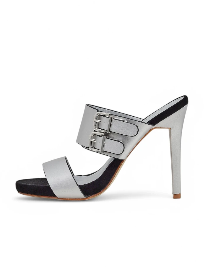 Сандалии Aletheia серебряные на шпильке 12см экологическая кожа с ремешками
