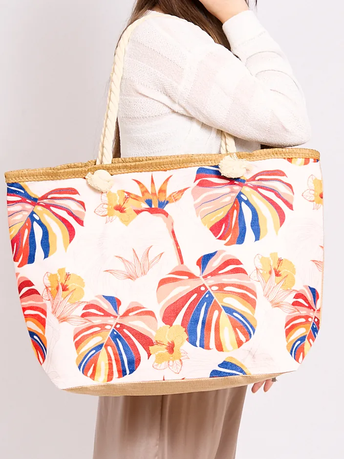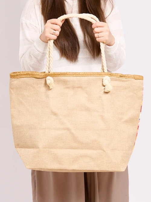 • Стильная тканевая сумка, отделанная принтом. Сумка имеет длинные ручки, закрывается на молнию и имеет 1 карман внутри. Она идеально подходит для пляжа!