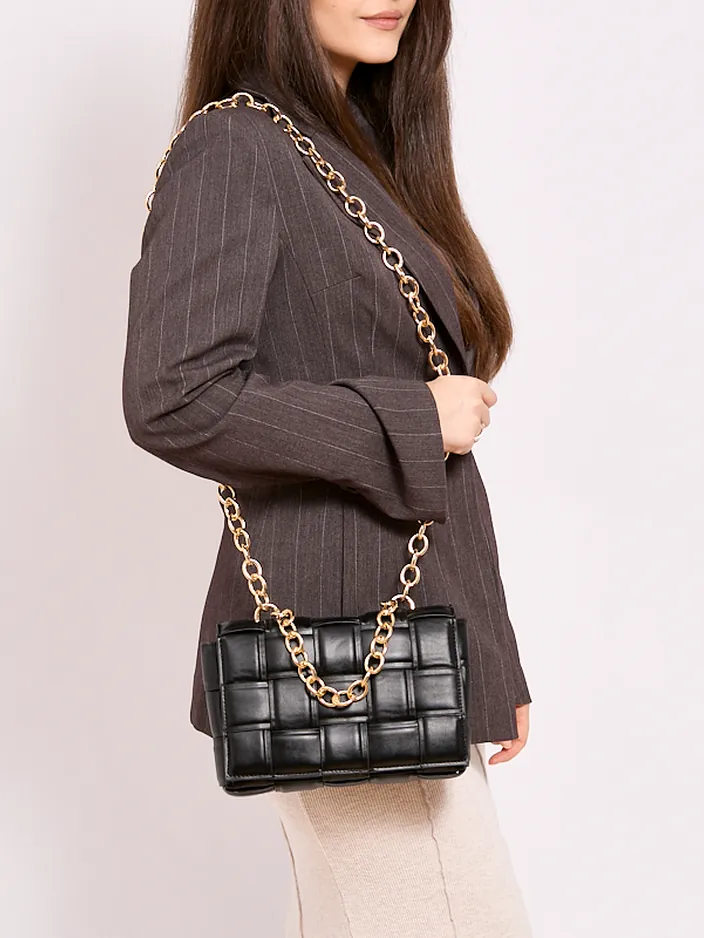 - Исключительная маленькая вязаная женская сумка из веганской кожи. Модель имеет 1 отделение и плечевую цепочку. Идеально подходит для повседневного использования!