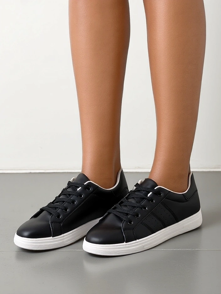 - Стильные женские спортивные ботинки на шнуровке на плоской подошве. Верх выполнен из экологичной кожи. Внутри тканевая стелька. Удобная обувь на каждый день!
