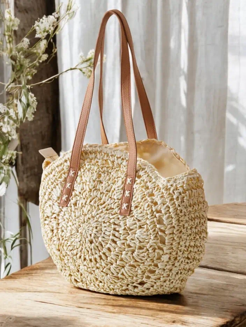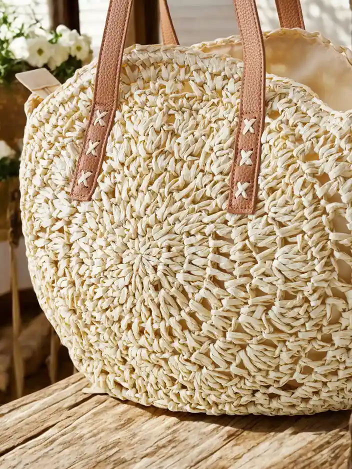 - Большая женская сумка, сделанная из плетеной соломки. Модель закрывается на молнию, имеет 1 основной отсек и 1 дополнительный карман. Идеальный аксессуар для летних нарядов!