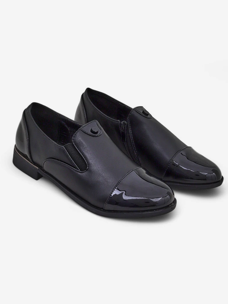 Czarne półbuty na płaskim obcasie z ekoskóry to najświeższy trend WIOSNA/LATO – doceniane za uniwersalność, komfort i minimalistyczną elegancję, idealnie wpisując się w styl zarówno klasyczny, jak i nowoczesny.