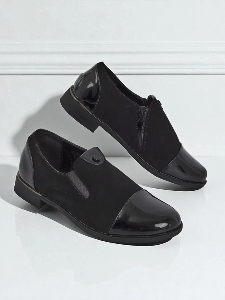 Черные полуботинки на плоском каблуке из экокожи – это самый свежий тренд ВЕСНА/ЛЕТО – ценятся за универсальность, комфорт и минималистичную элегантность, идеально вписываясь в классический и современный стиль.