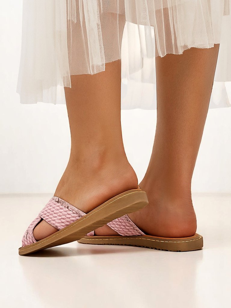 • Świetne damskie klapki na płaskiej podeszwie. Wykonane z eko skóry i eko zamszowej wkładki. Idealny wybór na wakacje!