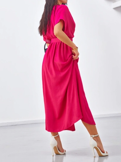 - Женское миди-платье с короткими рукавами, V-образным вырезом и ненавязчивым разрезом спереди, сочетающее элегантность с комфортом. Идеально для различных случаев.