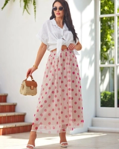 - Элегантная и женственная юбка миди из легкой вискозы, отделанная слоем тюля с нежными горошками. Идеальна для повседневной носки и особых случаев – она сочетает комфорт и романтический стиль. ПРИМЕЧАНИЕ: Точность измерений (+/-) 1 см.