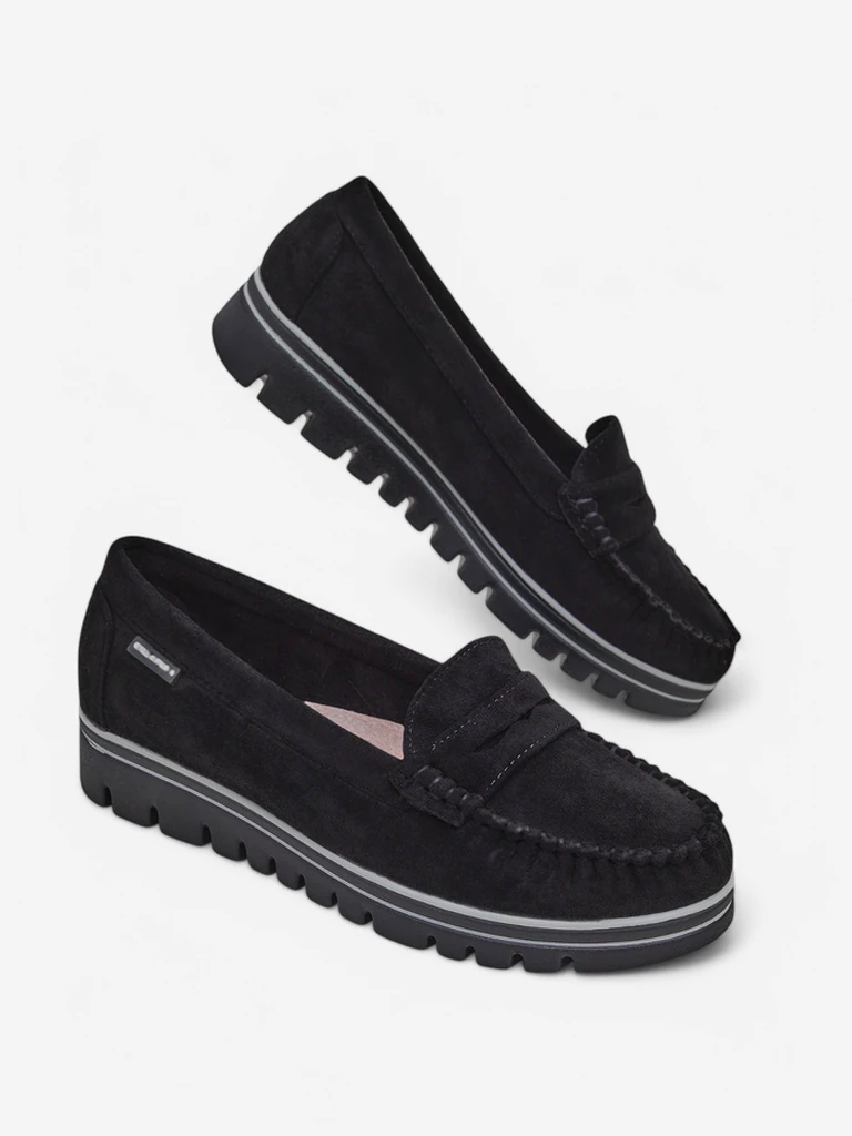 Откройте для себя новые черные мокасины Sabella, сочетающие в себе элегантность и исключительный комфорт. Эти туфли, изготовленные из высококачественной экологичной замши, не только стильно выглядят, но и заботятся об окружающей среде. Натуральная кожа стельки обеспечивает отличную вентиляцию и мягкость, что делает их ношение в течение всего дня чистым удовольствием. Благодаря плоскому каблуку высотой 3,5 см эти мокасины идеально подходят как для работы, так и для повседневных встреч с друзьями. Отличительные особенности: - Экологичная замша, рифленая подошва для лучшего сцепления - Легко надевать - отсутствие сложных застежек, что делает их удобными для повседневной носки. Мокасины Sabella отлично сочетаются с разными стилями. Вот несколько предложений: 1. Повседневный образ: сочетайте мокасины с джинсами и футболкой, чтобы создать непринужденный повседневный стиль. 2. Элегантный образ: сочетайте их с классическим платьем и легкой курткой в прохладный день. 3. Городской шик: подходящие чиносы и блейзер дополнят ваш современный образ. Чтобы сохранить высочайшее качество обуви, рекомендуется регулярно чистить ее влажной тканью и избегать контакта с водой. Мокасины не требуют сложного ухода, но их следует хранить в сухом месте, чтобы сохранить их первоначальную форму. Время для покупок! Выберите сейчас свои идеальные мокасины Sabella и следуйте современным тенденциям моды, сочетающим комфорт и изысканный стиль.