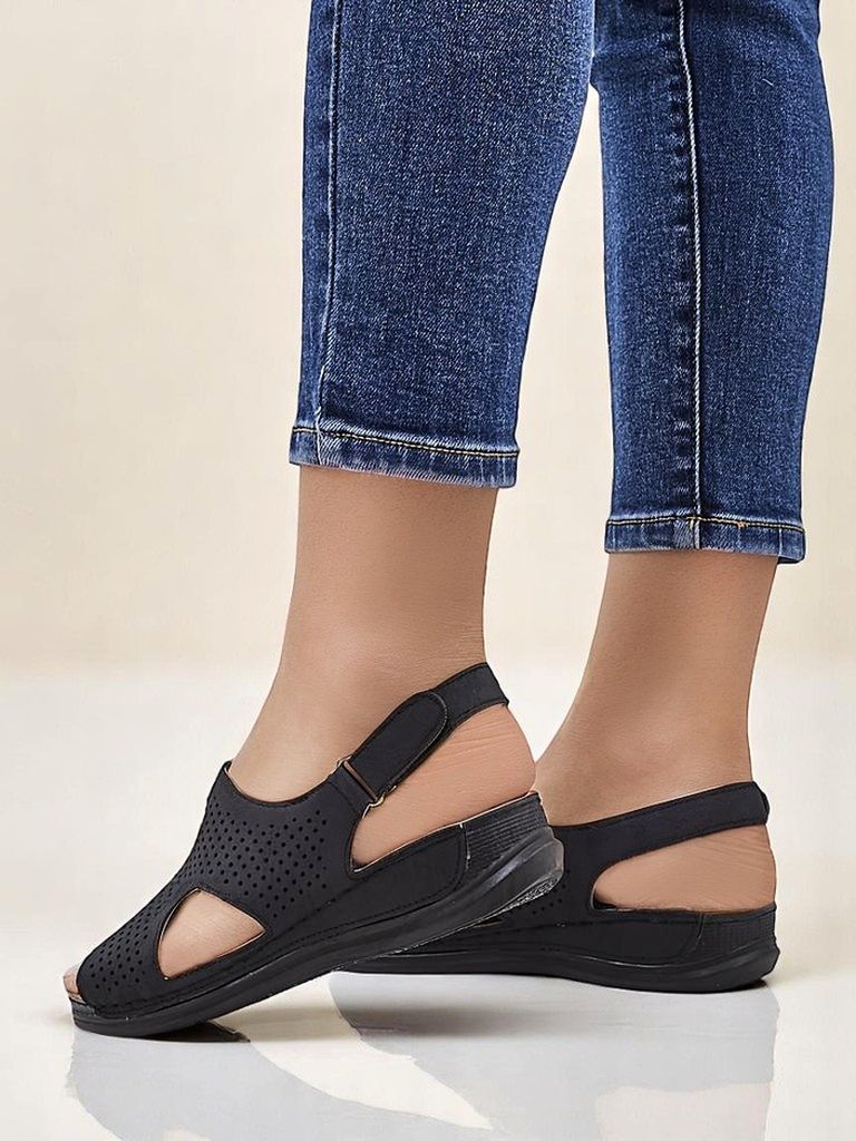 - Женские ажурные сандалии на низкой подошве – идеальный вариант для жарких летних дней. Модель выполнена из экокожи. Обувь с регулируемыми ремешками. Сочетание стиля и комфорта!