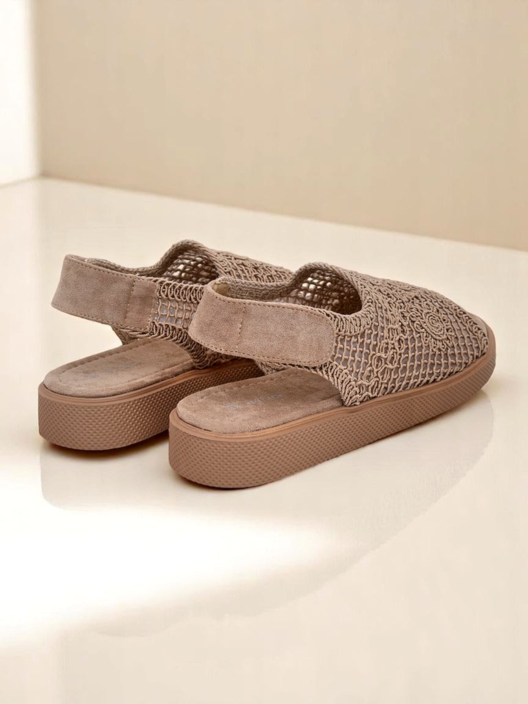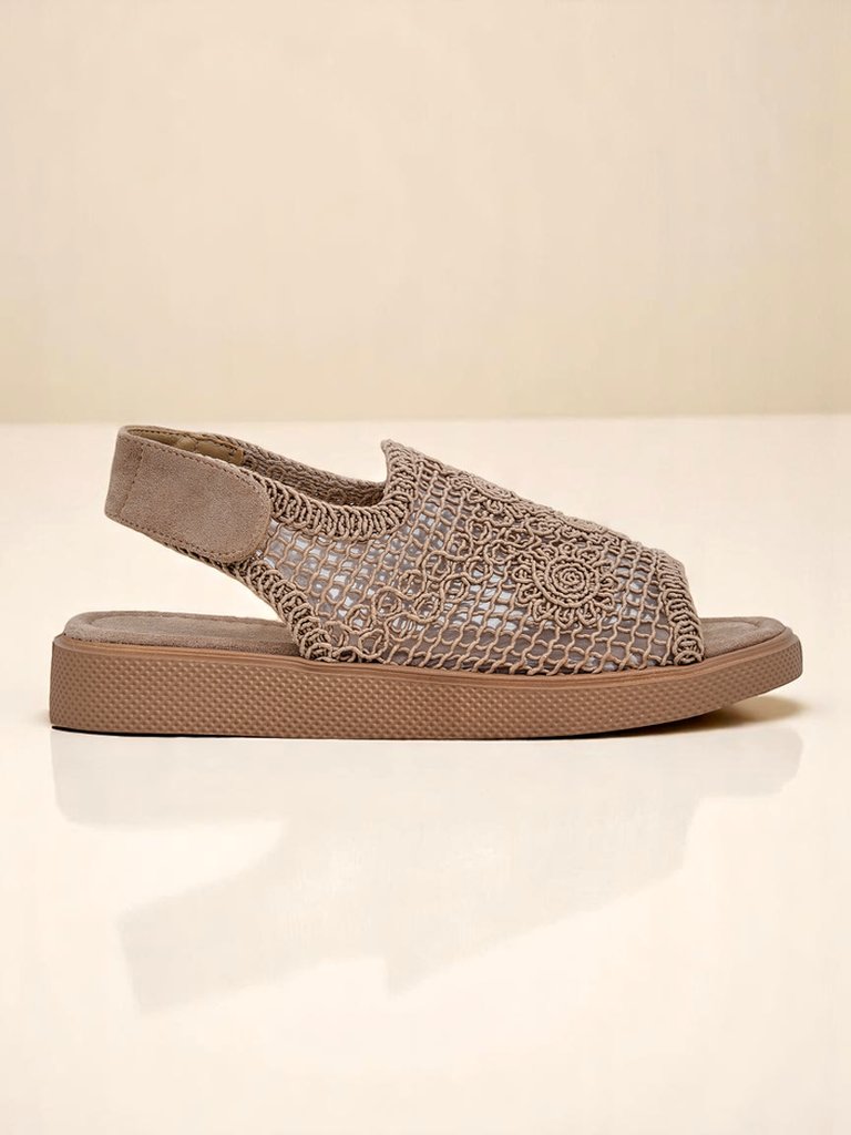 - Женские ажурные сандалии на низкой подошве – идеальный вариант для жарких летних дней. Модель выполнена из текстиля со стелькой из экокожи. Обувь со застёжкой на липучке. Сочетание стиля и комфорта!