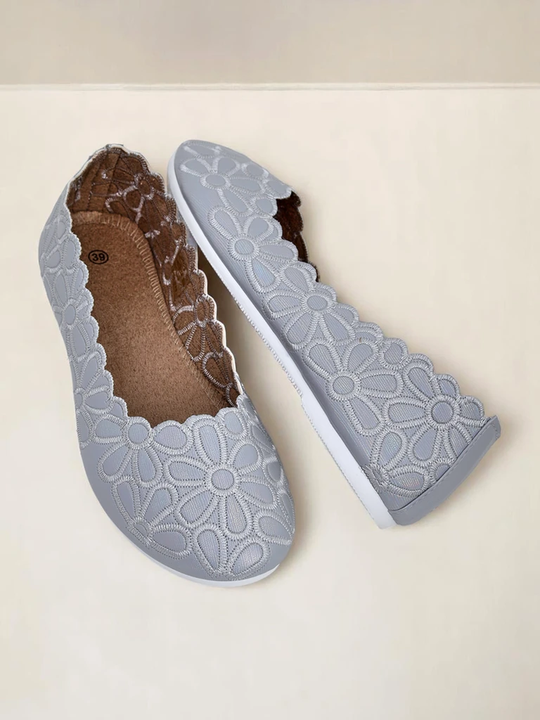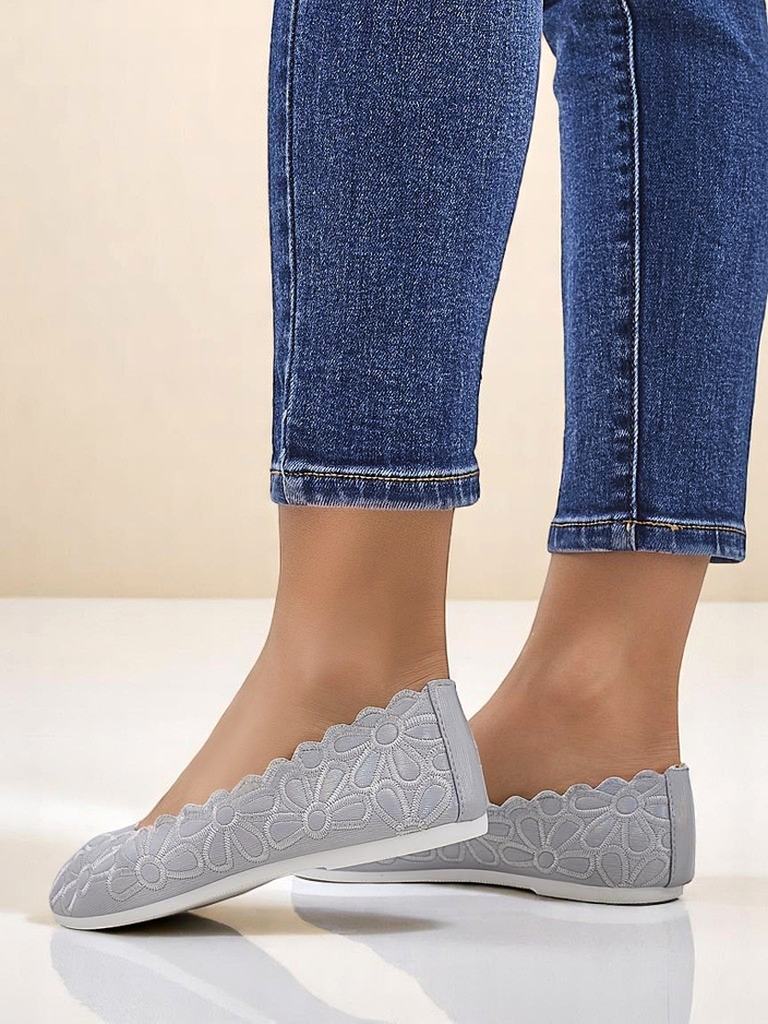 • Превосходные балетки из ткани с круглым носком. Верх украшен изящной цветочной вышивкой. Мягкая тканевая стелька обеспечивает комфорт. Они идеально подходят для элегантных и модных образов!