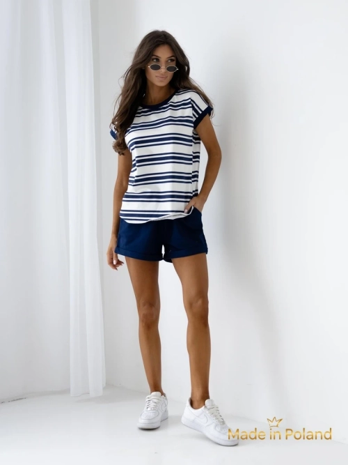 Royalfashion Женский комплект из хлопка с короткими рукавами и шортами в полоску