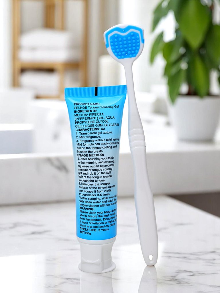 - Гель для гигиены языка с щеткой эффективно удаляет бактерии, налет и неприятный запах, способствует свежему дыханию и комплексной гигиене ротовой полости.