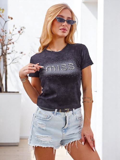 Royalfashion Женская хлопковая футболка с стразами MISS