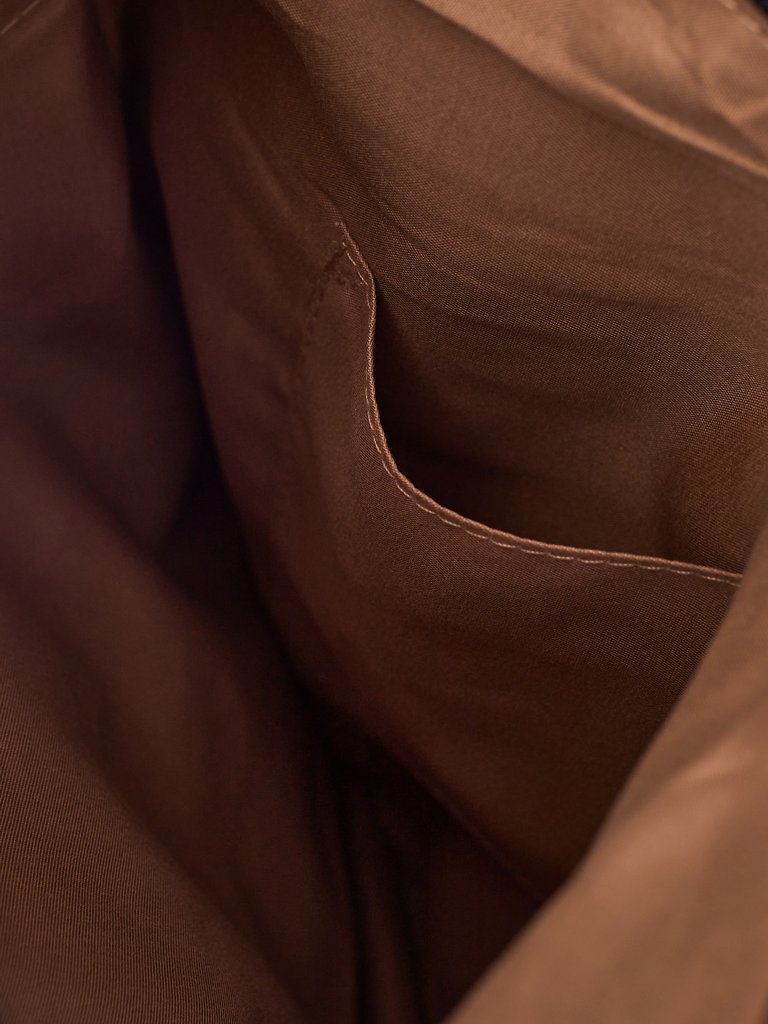 - Сумка-шоппер из стёганой блестящей ткани и лакированной экокожи. 1 отделение, 1 внешний карман, 3 внутренних кармана и регулируемый, съемный ремень. Ежедневная элегантность.